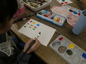 色をできるだけ本物に近づけるように、いろいろ混ぜて色づくりをしましょう。