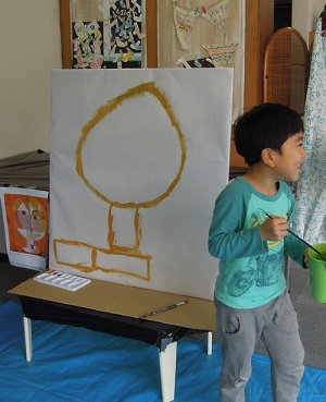 油の匂いにびっくりし、おそるおそる絵の具に筆を落とし、