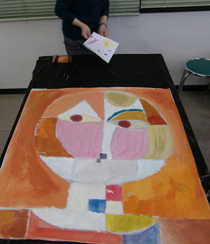 11月は名画の模写です。パウル・クレーの「セネシオ」、アンリ・マティス「ナスタチウムとダンス」等の予定。人数などによって変更もあります。グループで模写をしますが、同じような色を作ることを中心にします。いろいろな色を混ぜてどんな色になるか確かめましょう。