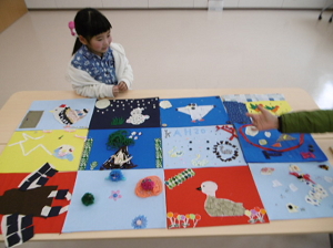 自分の布絵にお話を考えた子もいました。何枚か作ってお家で絵本にしてもいいですね。