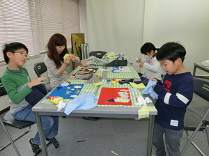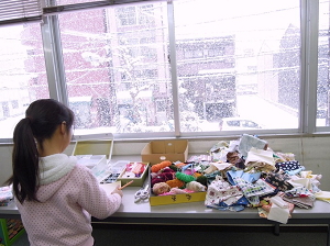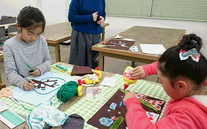 1月は布や毛糸を使って絵を描きます。