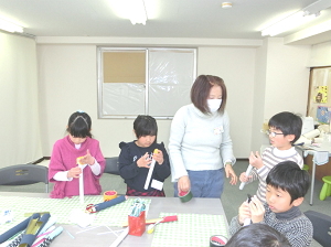 12月はみんなが楽しみにしていた「ケーキをデザイン」です。本当のケーキを使いますので、エプロン・三角巾(バンダナ等)・密封容器(余った時用)お手拭きを持ってきてください。飲物はジュース・紅茶を用意します。出来上がったらみんなで食べますので、都合のつく保護者の方は11時半くらいにおいでください。