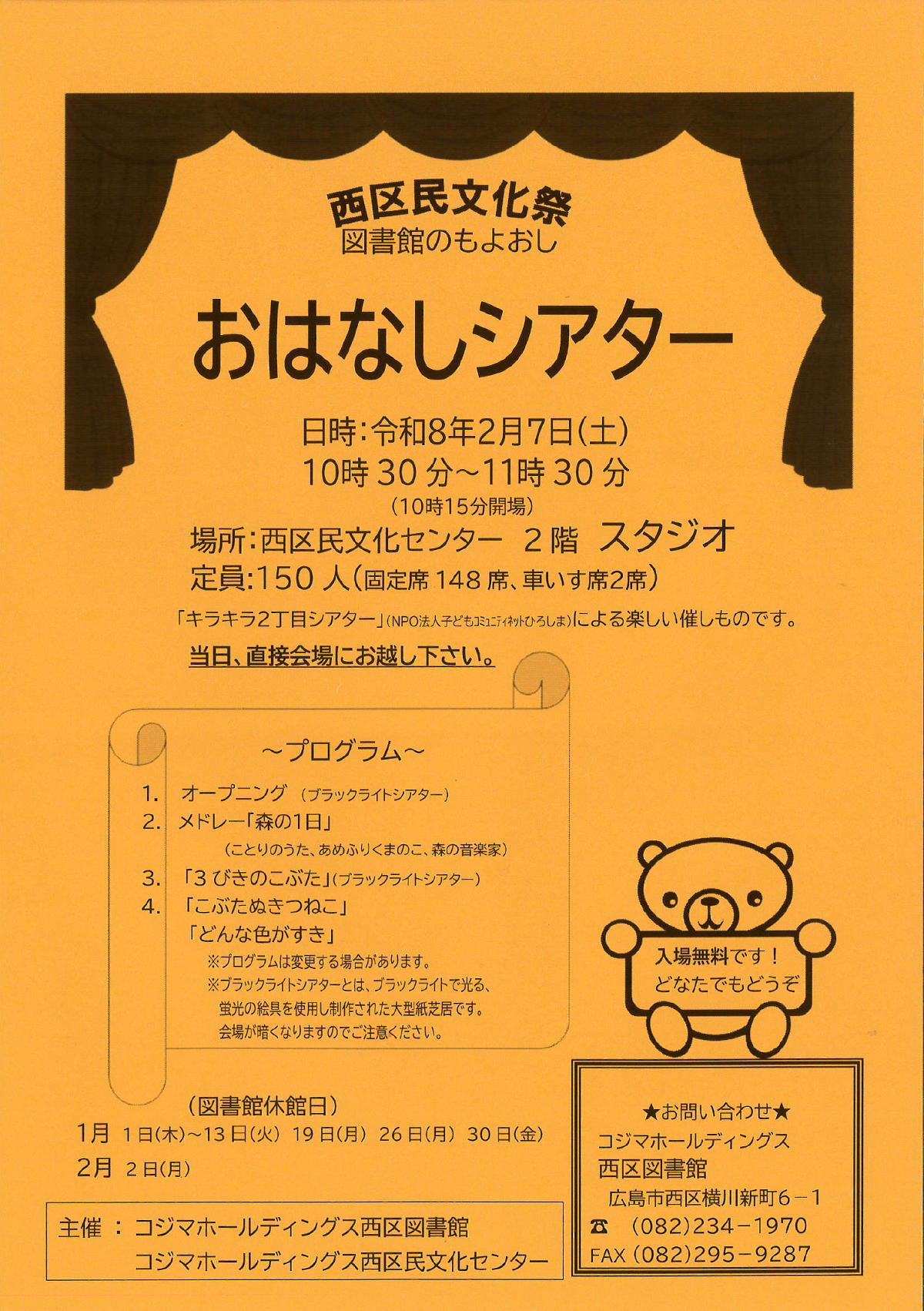 後援/公益財団法⼈ひろしまこども夢財団 |