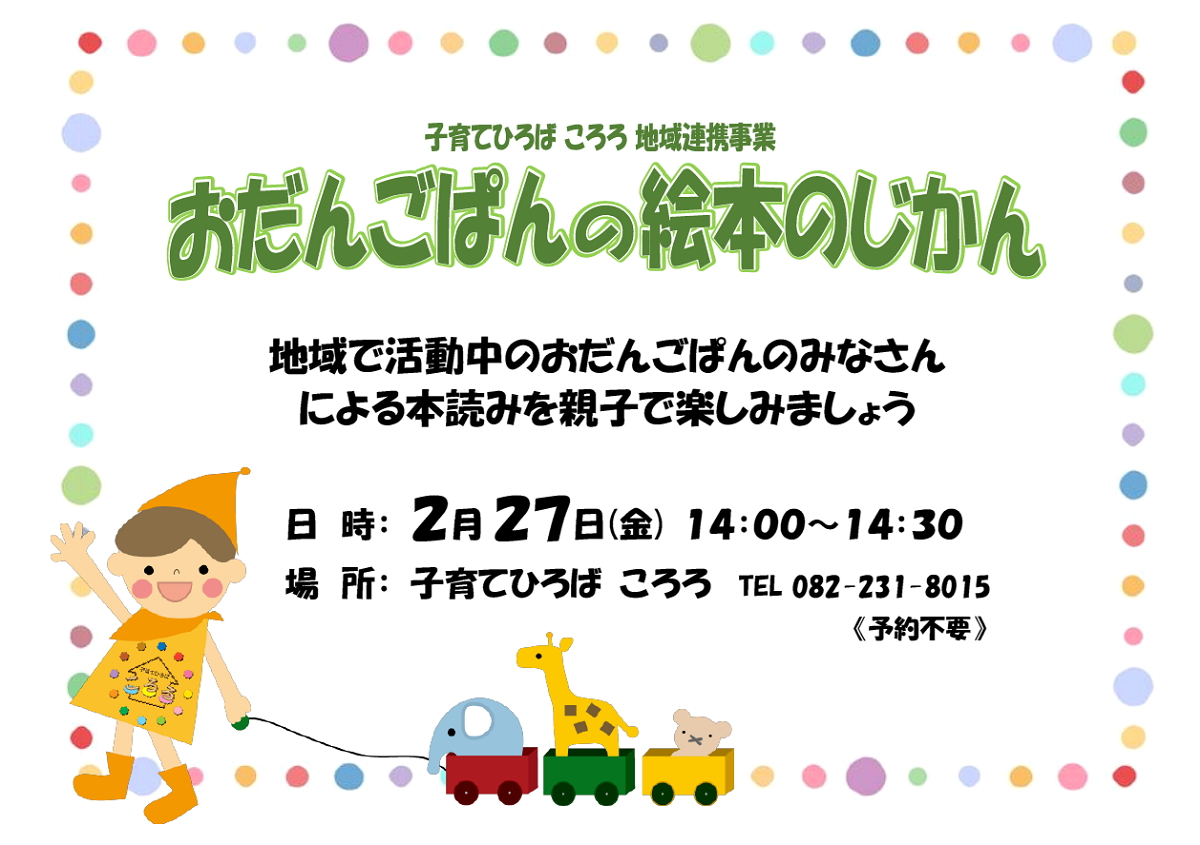 | |トップ|子どもコミュニティネットひろしまについて|子育てひろば“ころろ”|おやこ体験ひろば“あるて”|えほんであそぼう“ゆるぐ”|シアター|メール| |