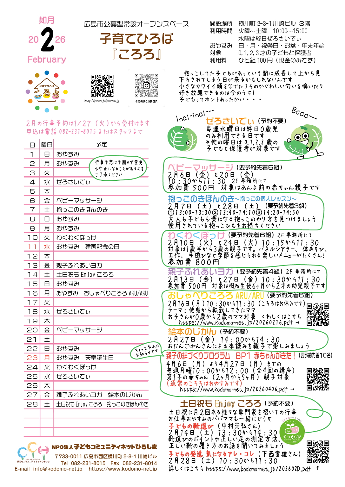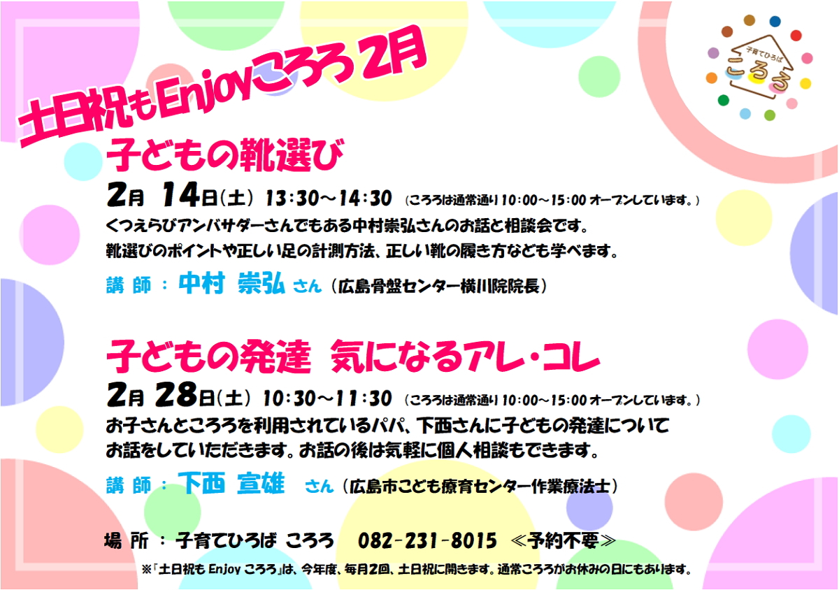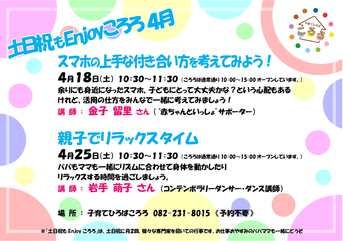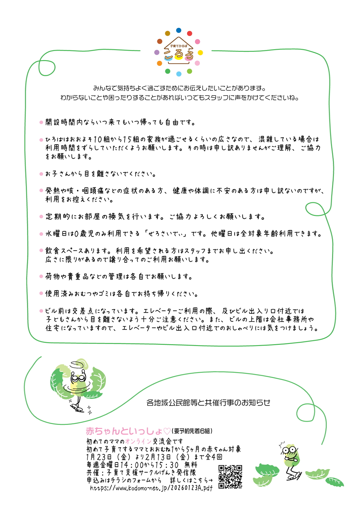 『子育てひろばころろ』が、そんな場所のひとつになることを目指してまいります。