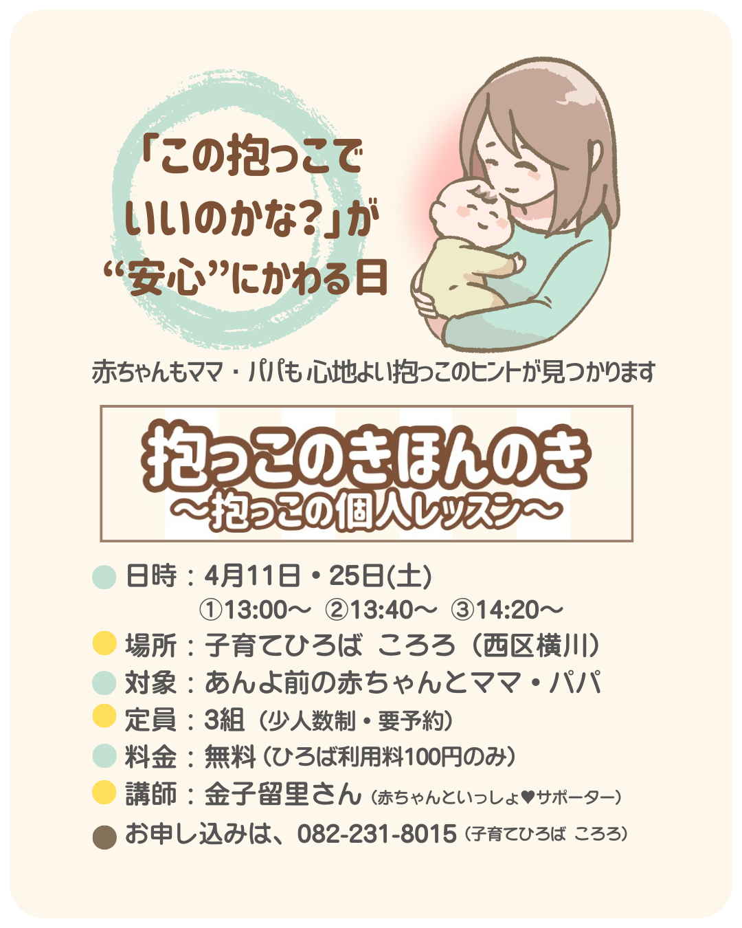 4月のベビーマッサージは3日(金)10日(金)17日(金)