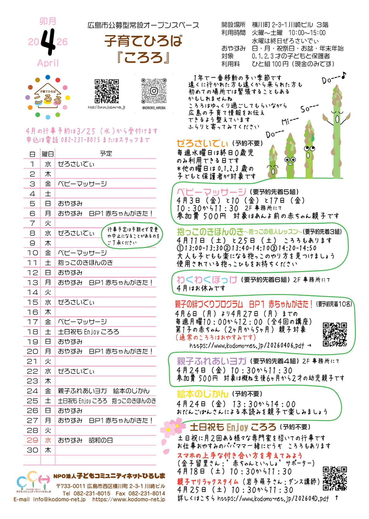 ころろ4月カレンダーはこちら
